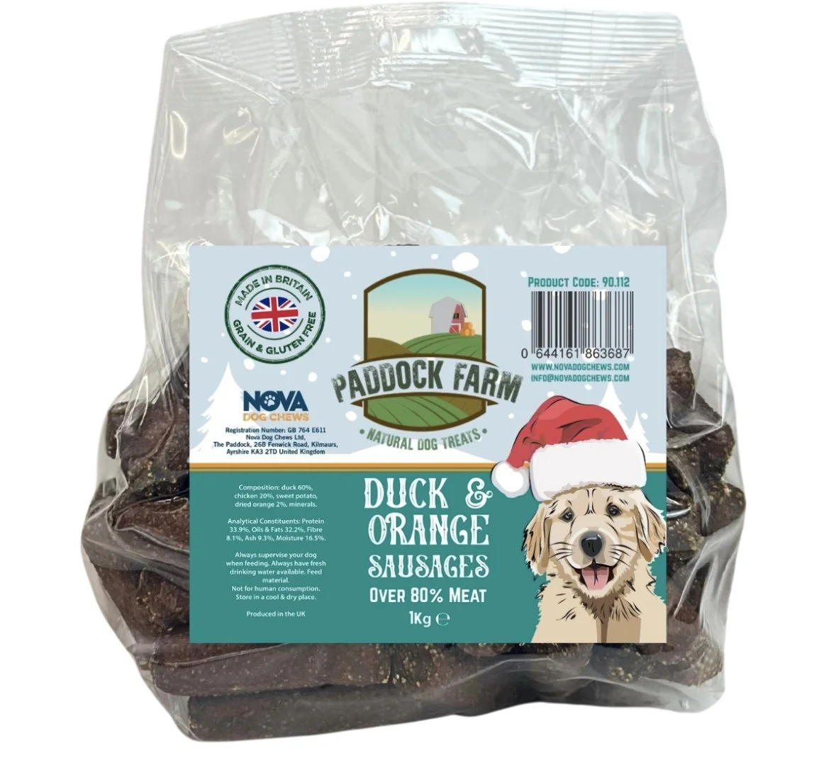 Image 1 of 1 Pack of 10 Duck & Orange Sausages Sale Price: £3.50 Original Price: £4.00 sold out Our Duck & Orange Sausages are high in protein and suitable for all breeds and sizes. Making them the perfect festive snack! Sold Out Added! Our Duck & Orange Sausages are high in protein and suitable for all breeds and sizes. Making them the perfect festive snack!