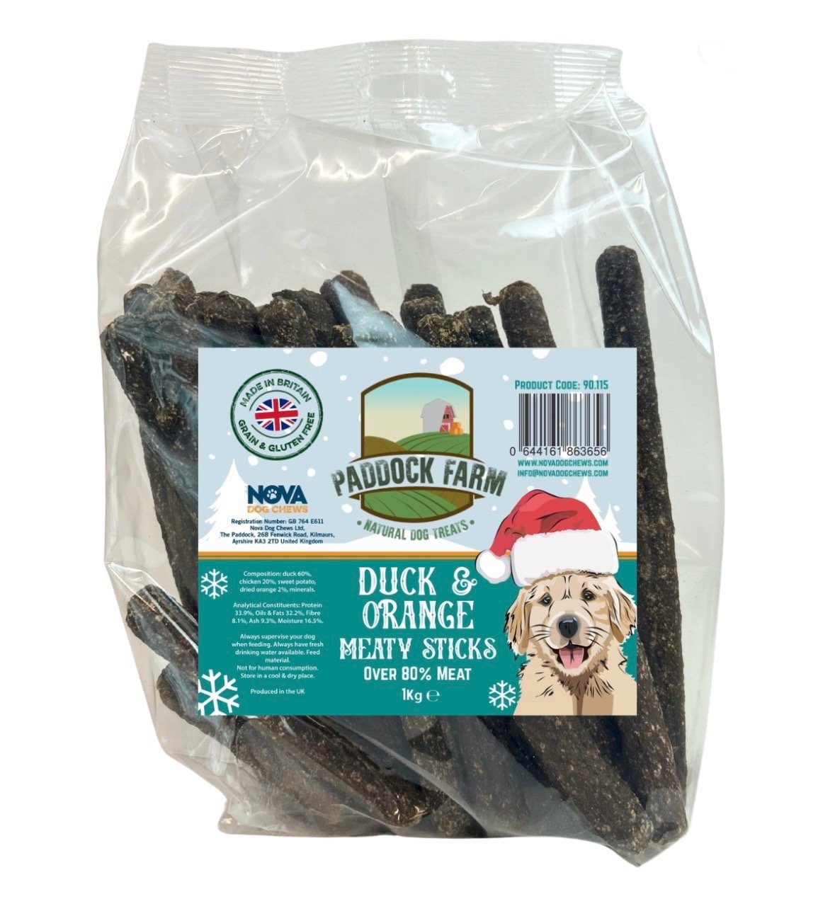 Our Duck & Orange Meaty Sticks are not only delicious but they’re healthy too! Ideal for dogs of all breeds and sizes, they’re also perfect as training treats as they can be cut up into small slices!